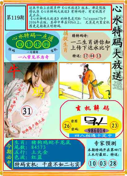 | 064期 推荐1肖1码〔虎.17〕把握机会中大奖 | |